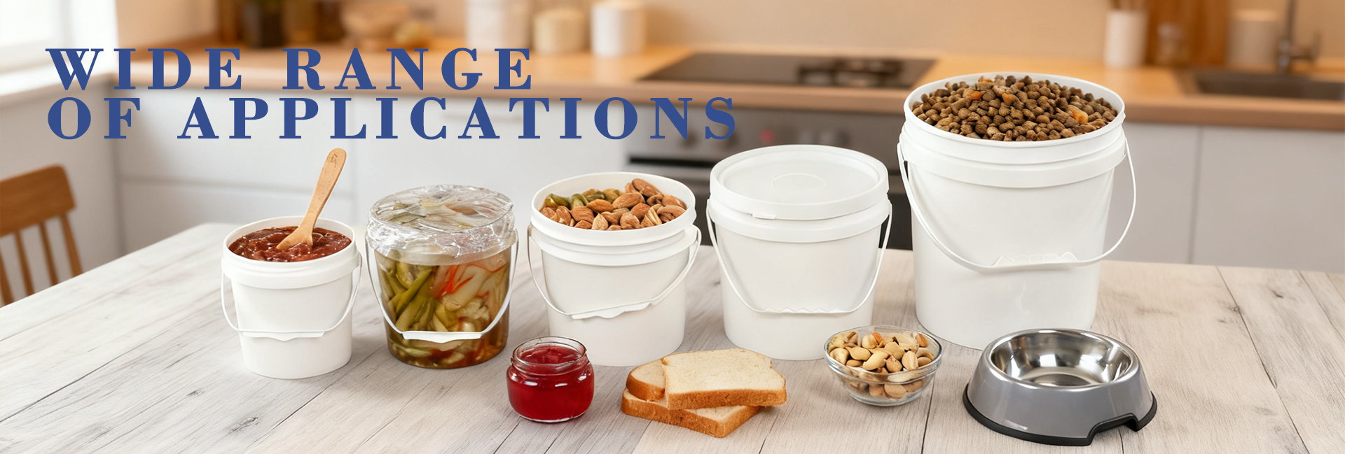 ถังพลาสติกเกรดอาหาร PP HDPE ขนาด 150 มล. 350 มล. 500 มล. 600 มล. 1 ลิตร 2 ลิตร 3 ลิตร 5 ลิตร 6 ลิตร 10 ลิตร 15 ลิตร 18 ลิตร 20 ลิตร 25 ลิตร 28 ลิตร 30 ลิตร พร้อมฝาและหูหิ้ว